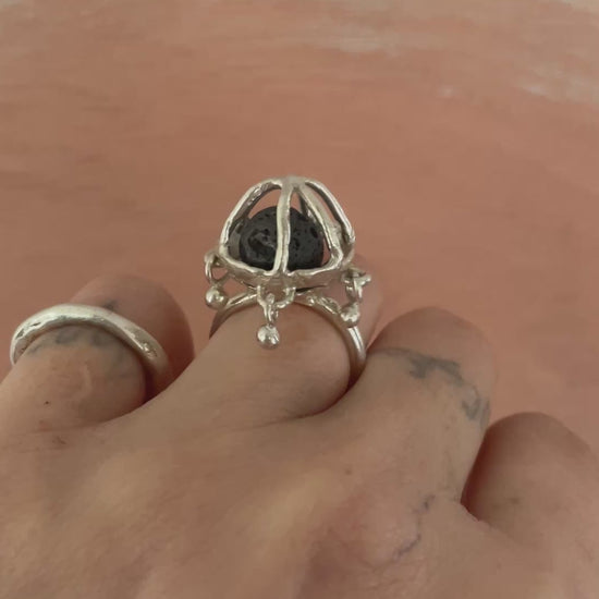 little domed ring encasing a bead of porous lava rock ~ add a drop of essential oil and let it absorb, carry around a little comfort, or energy, or whatever you choose!