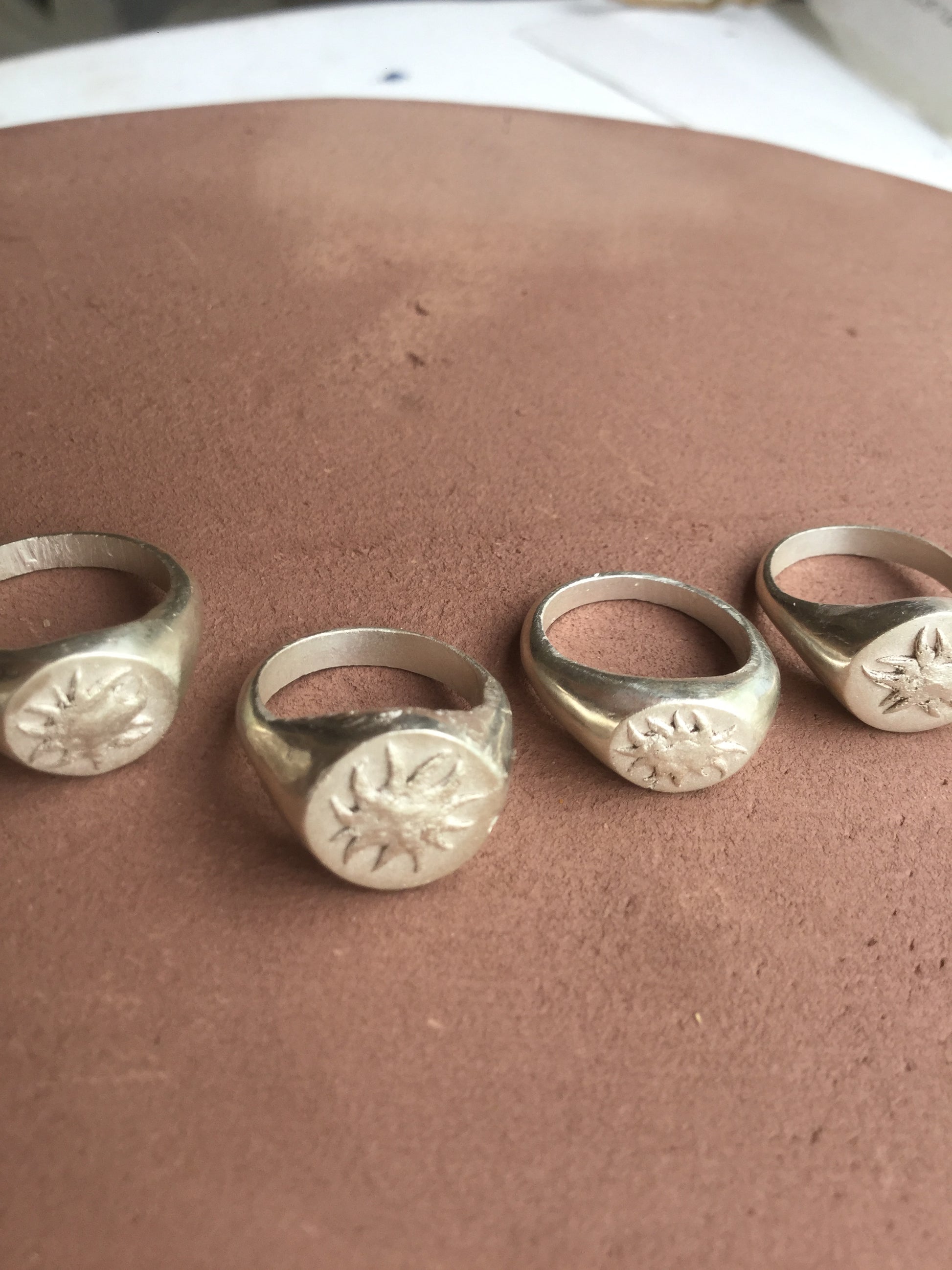 recycled silver signet ring with a creation fire star symbol, to feel creative energy and some fire power with