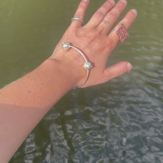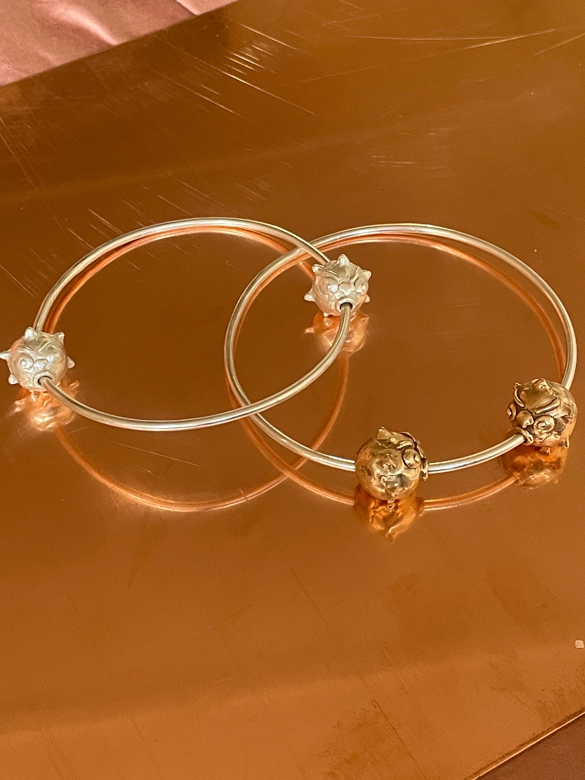 silver bangle bracelets featuring grumpy little goblins that move around and have kisses :-)
