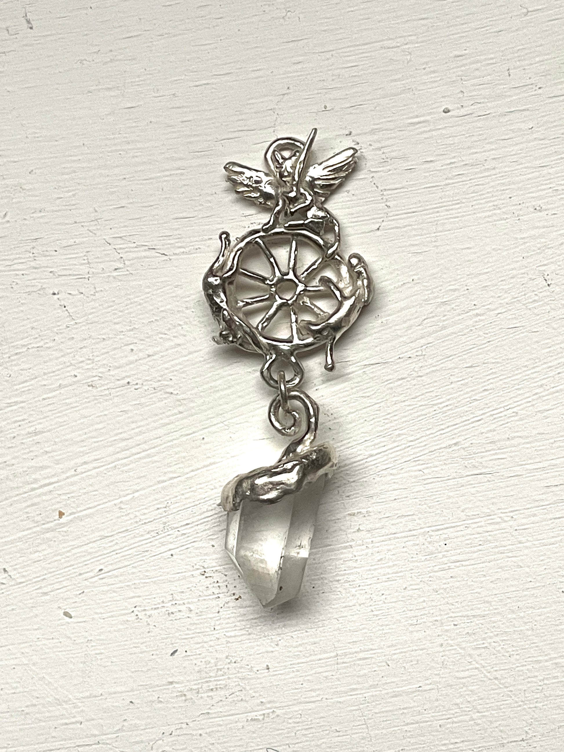 pendent made from recycled silver and quartz bought from within avebury henge, image from the world tarot card ~ for use as a pendulum but also can be worn