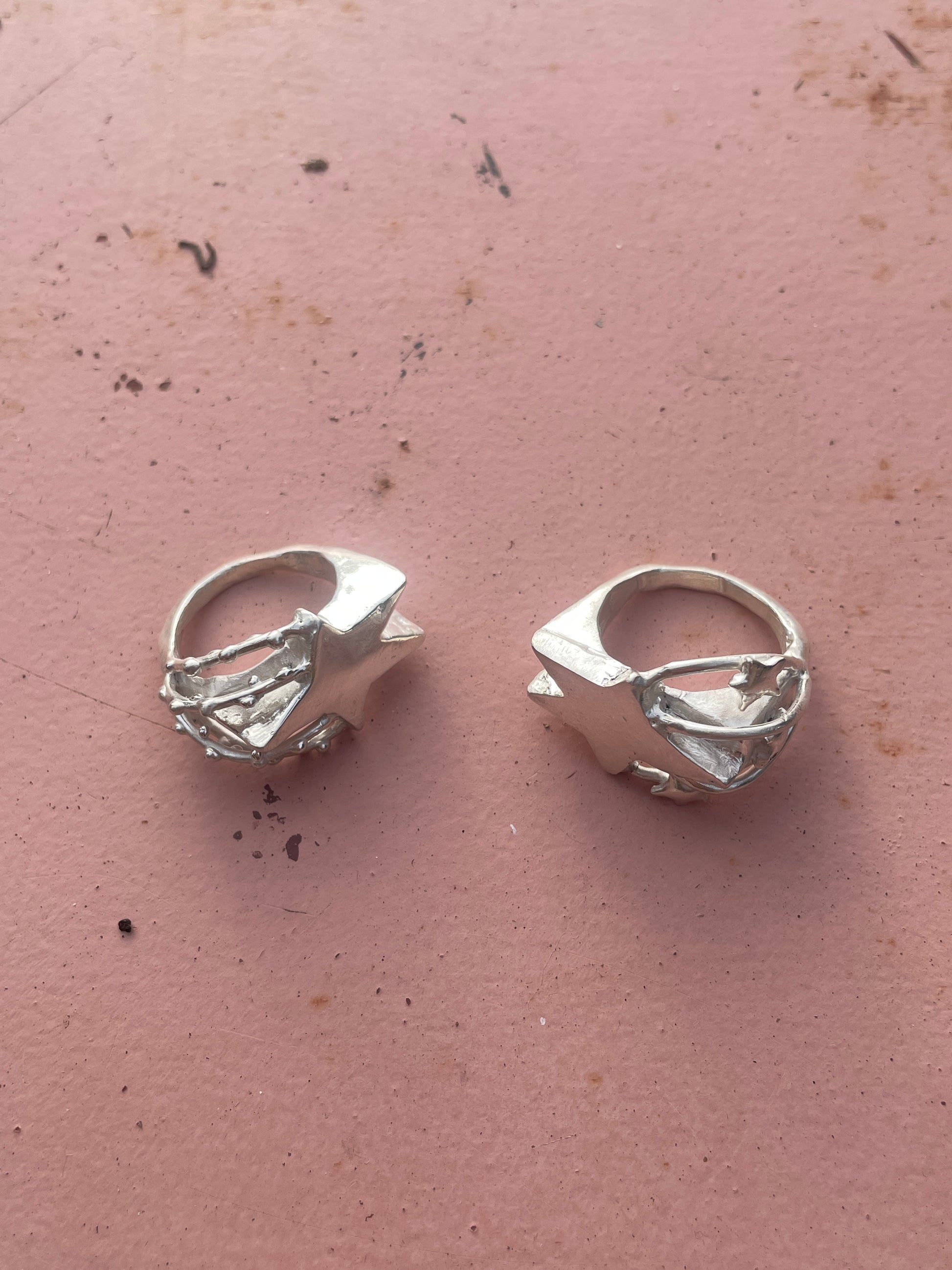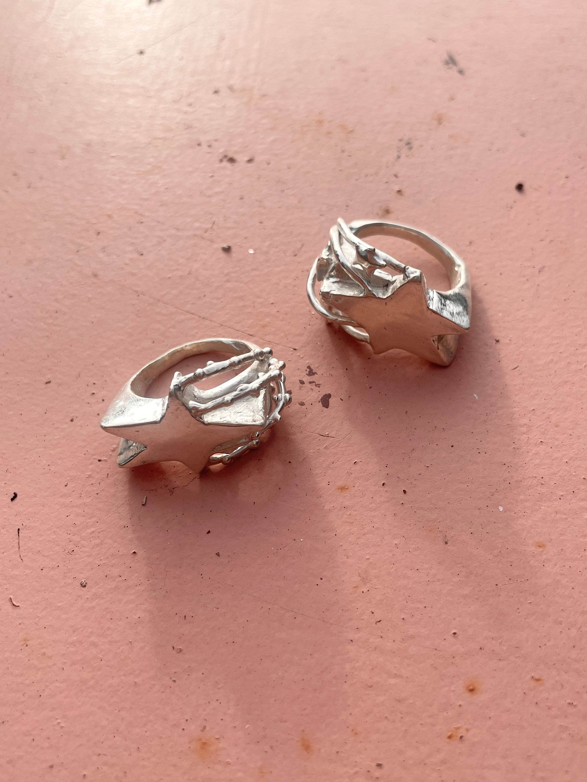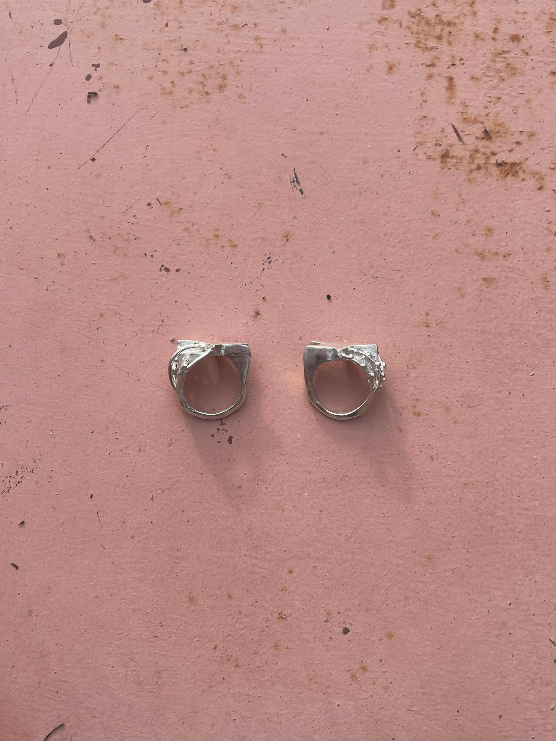 chunky night magic rings made from recycled silver, carved from beeswax: they still hold the texture of the wax
