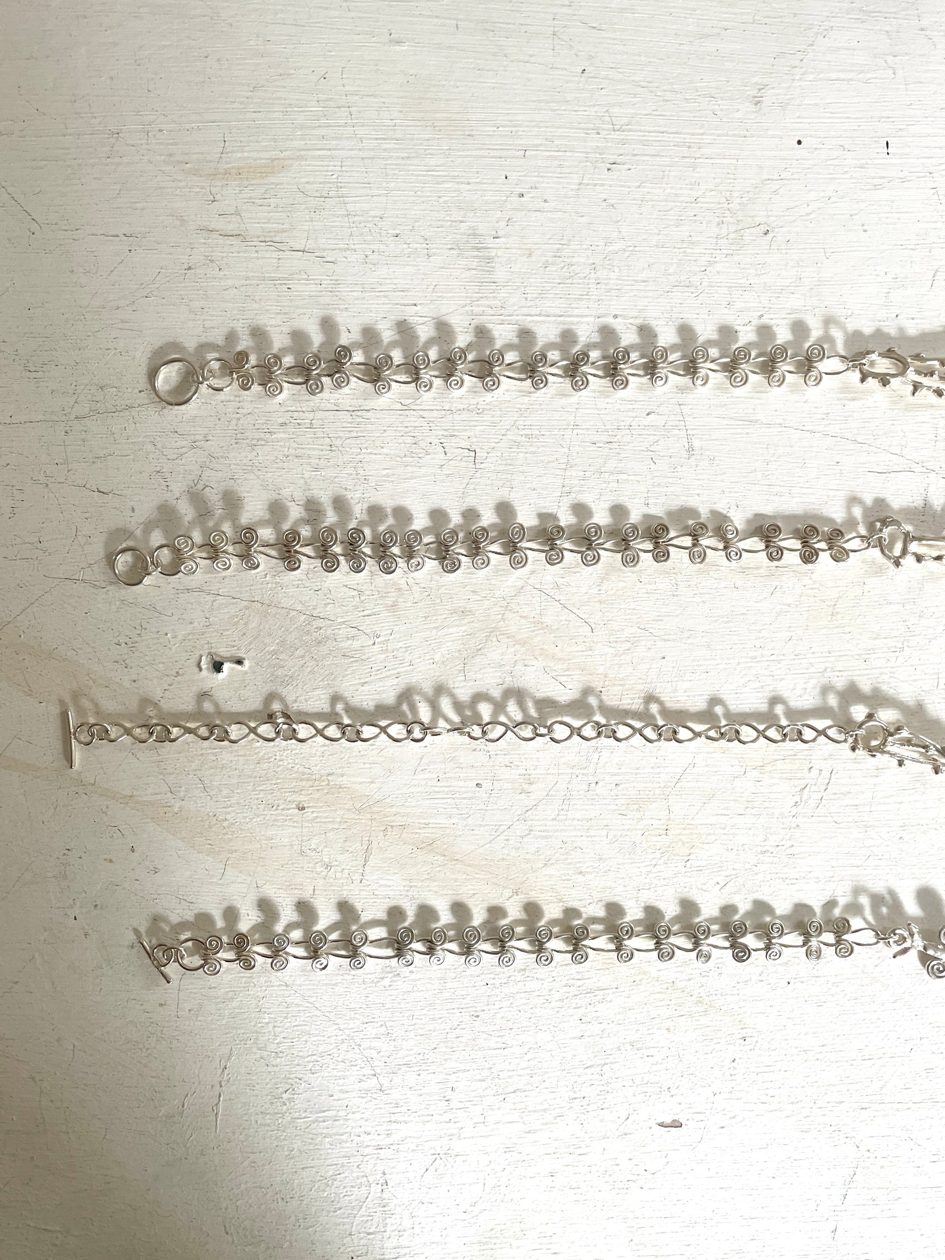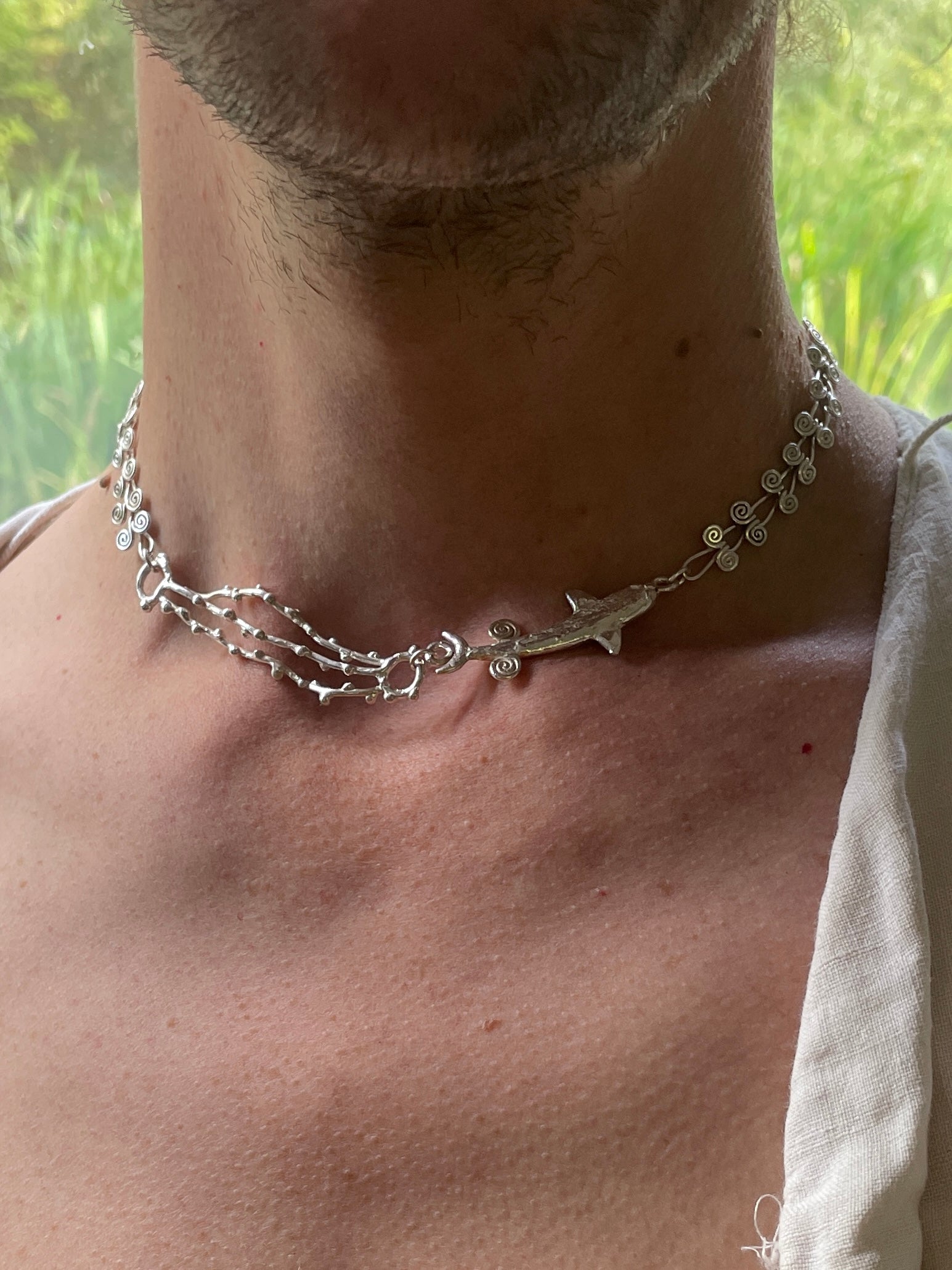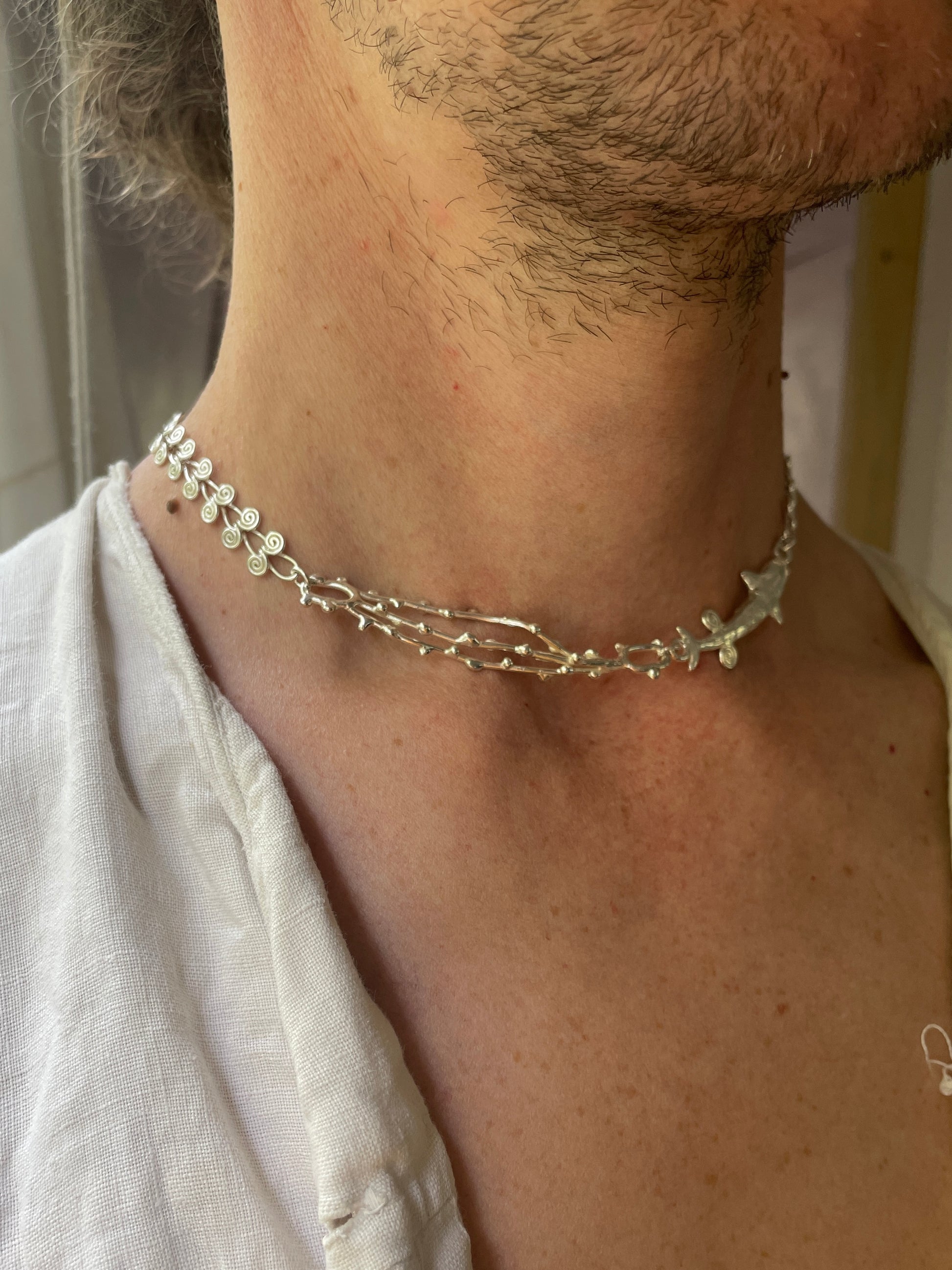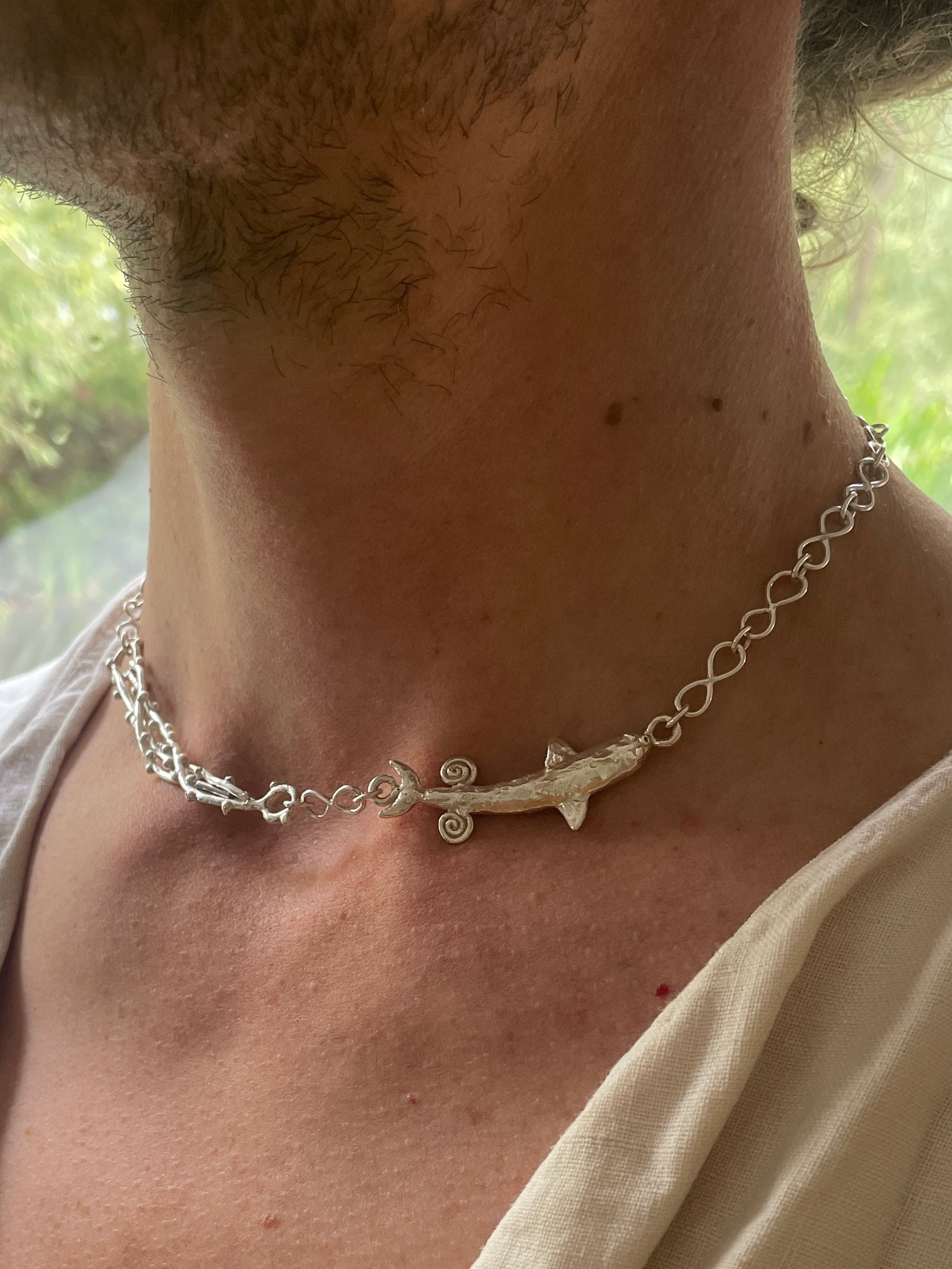 each made from recycled sterling silver with handmade chains, and lost wax cast fishes and bubbles, with a toggle clasp