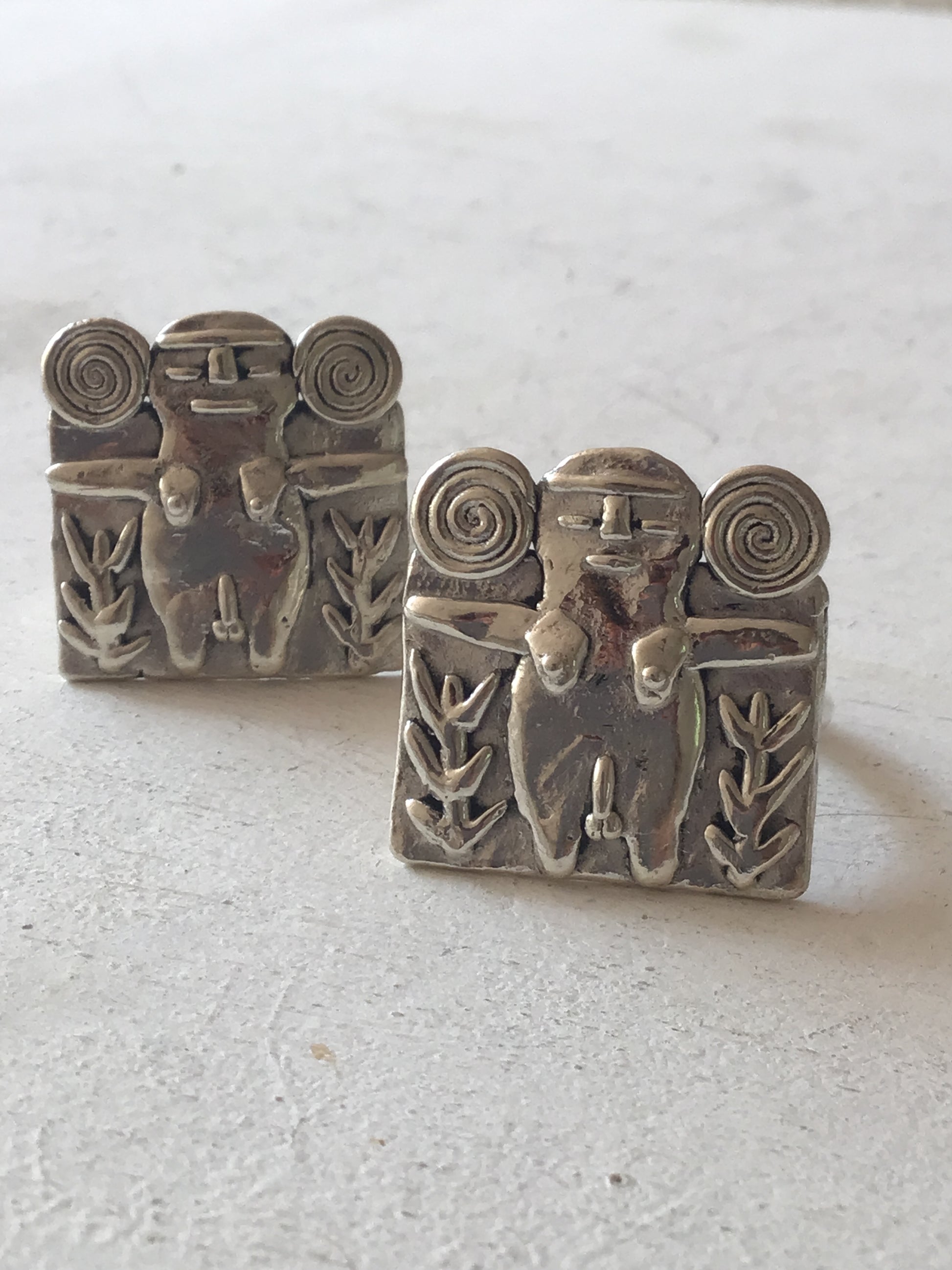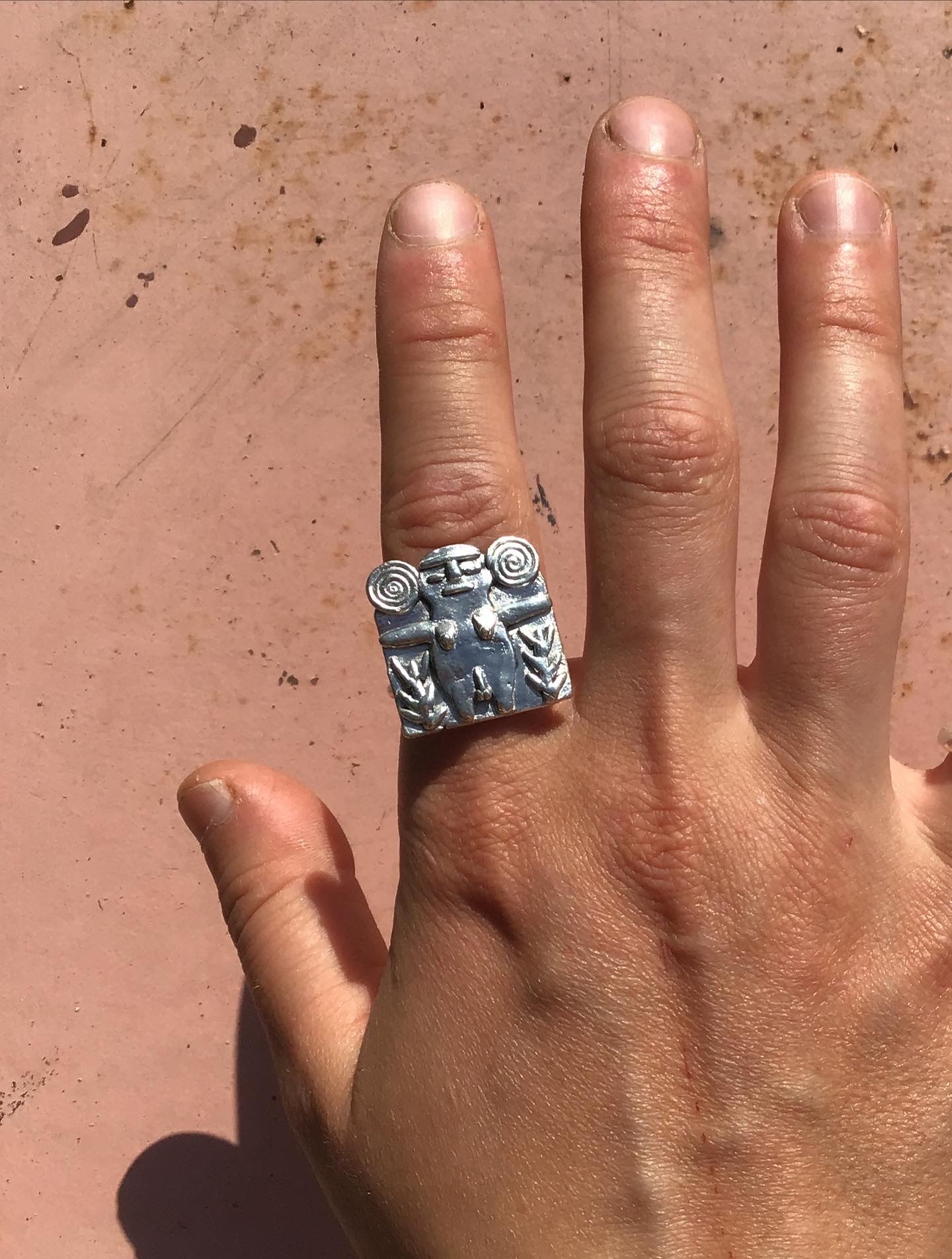 happy belly person with plants, recycled silver